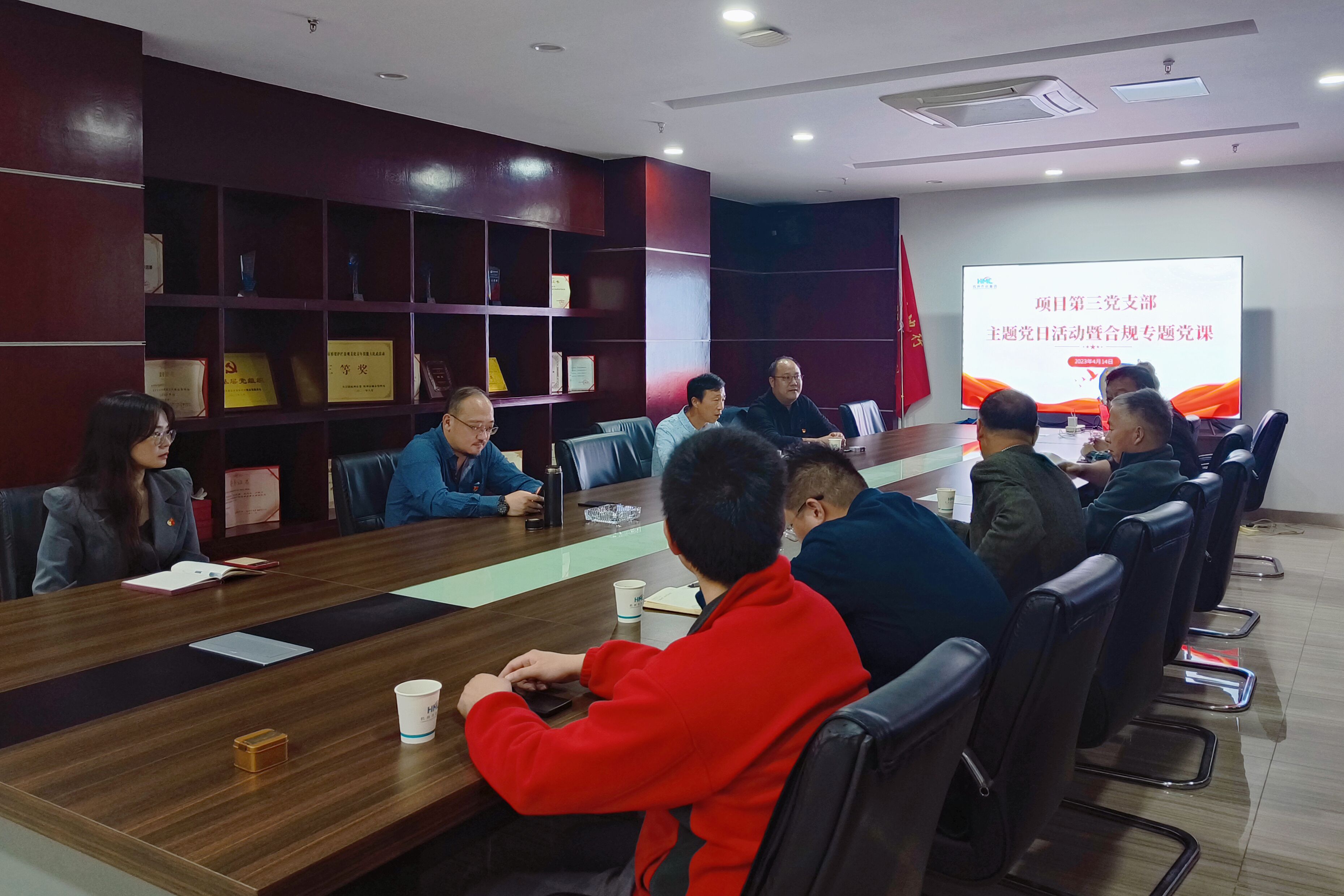 在项目第三党支部,支部书记、养护分公司总经理屈立宇授《抓合规、促管理,推动企业可持续发展》专题党课,要求党员在企业合规建设中严以律己、主动担当、做好表率,助力企业实现健康、可持续发展。