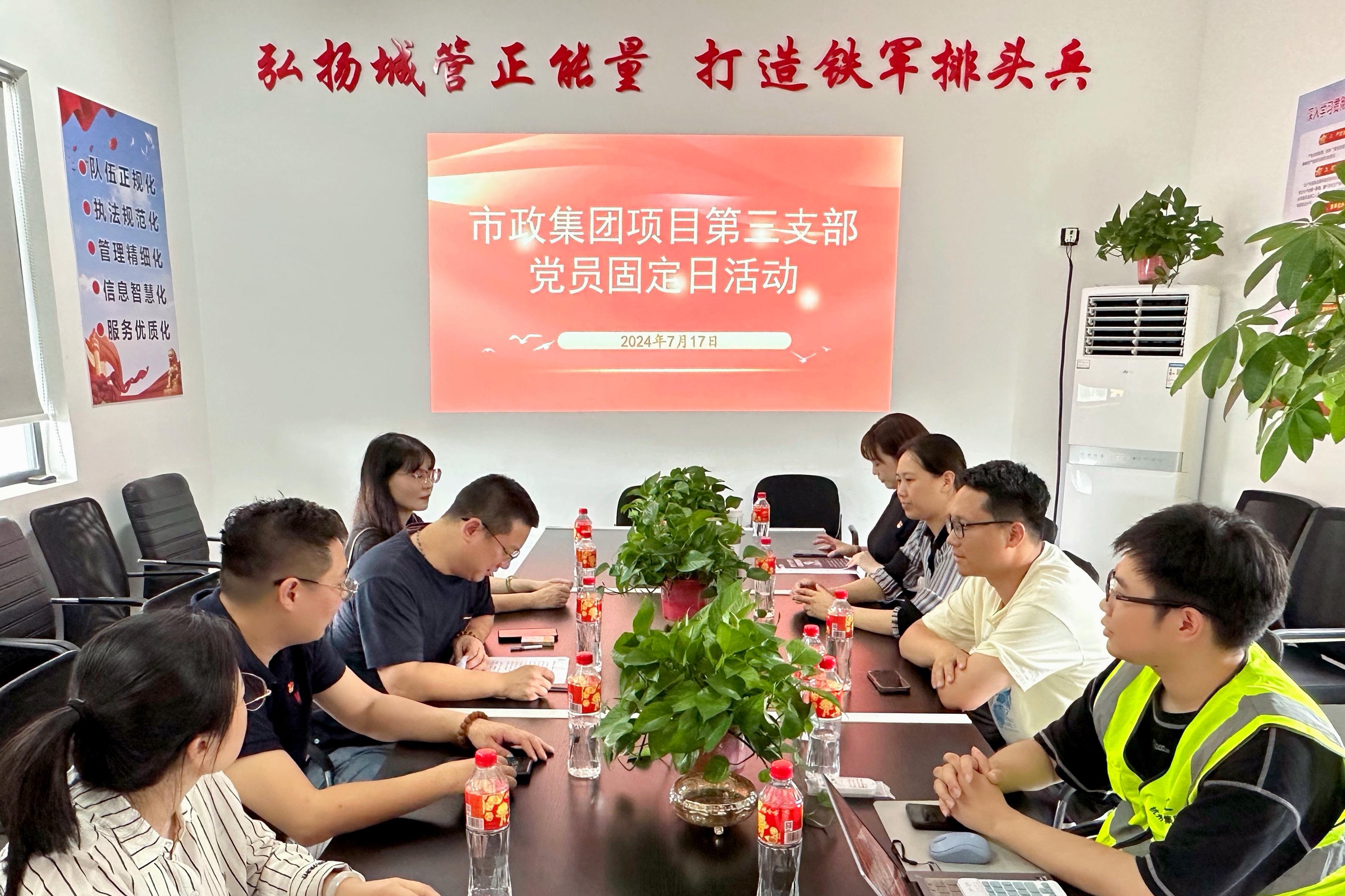7月17日下午,项目第三党支部在市政养护项目基地组织开展主题党日活动暨专题党课。