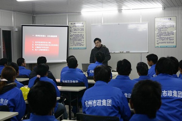 杭州民工的第一堂文保课在石桥路工程民工学校举行