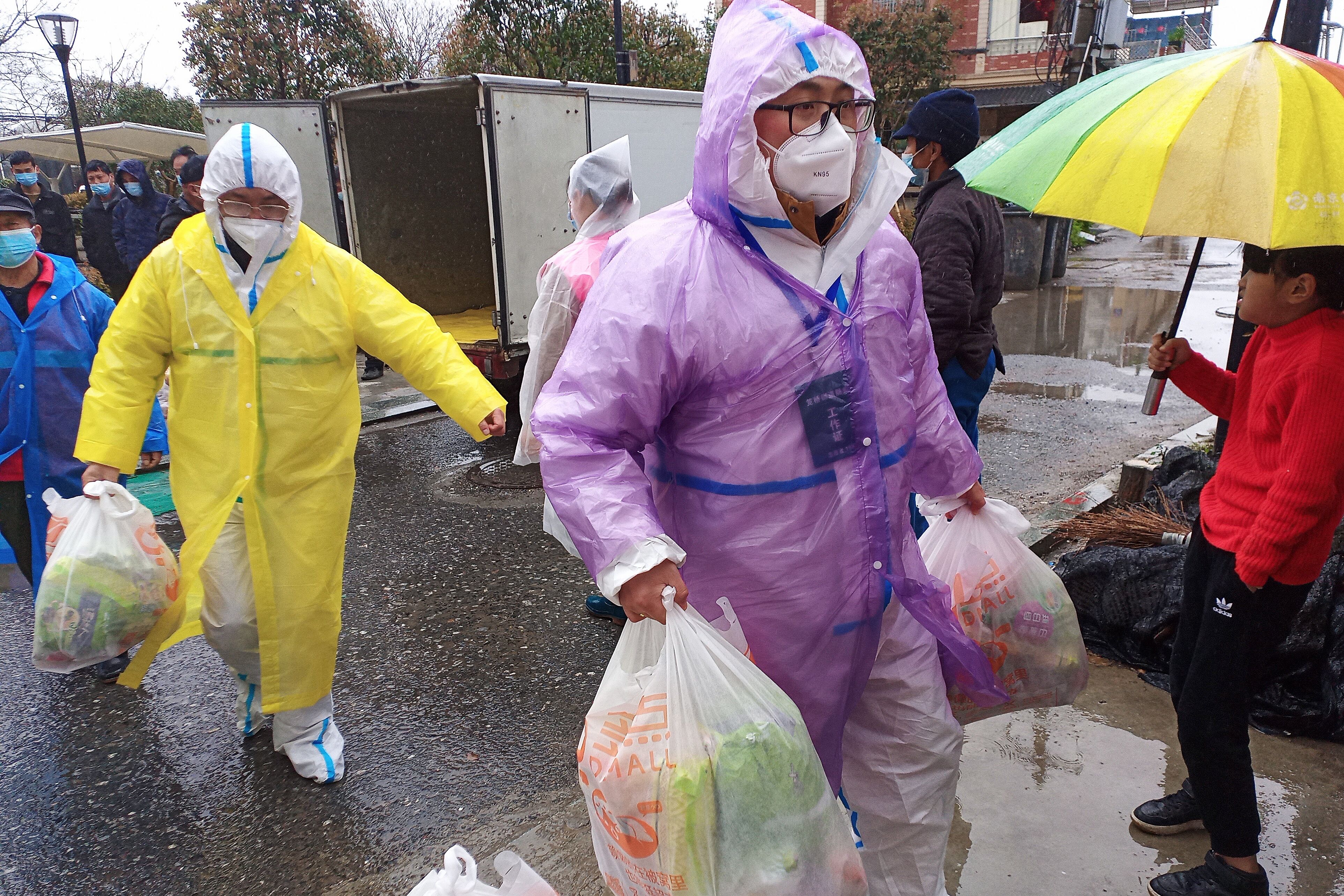 2月11日在滨江区江三社区,9000余名解除隔离的居民乘坐486辆大巴陆续回家。楼志钢和张晓东、帅宝枋、郭霞辉、魏维维、唐建洪,一趟又一趟地搬运行李、扶老携幼,顶风冒雨、干劲十足。