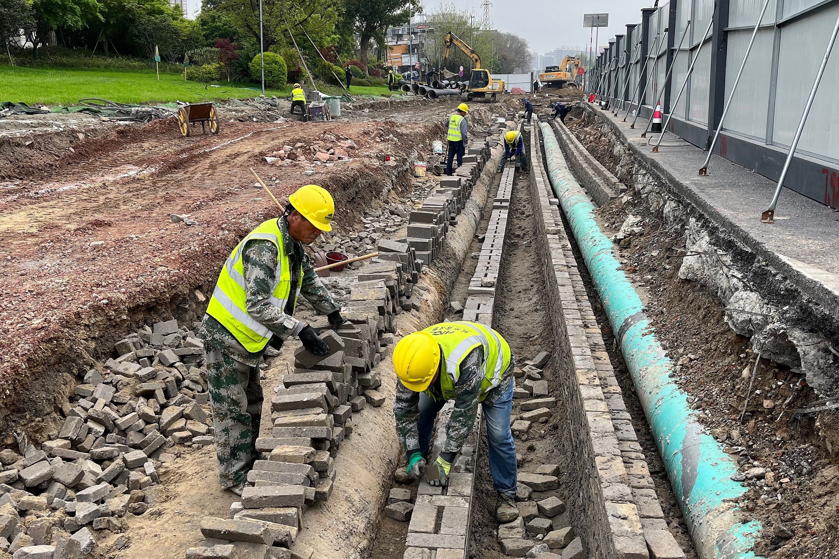 目前,该工程地铁恢复路段已完成东侧慢车道沥青铺设、人行道侧平石及道板铺装,交通改道已进行至第二次,景观绿化也已开始实施,预计5月底完成。地铁恢复路段外将于5月中旬完成所有人行道板铺装、侧平石翻建及沥青铺设等施工。