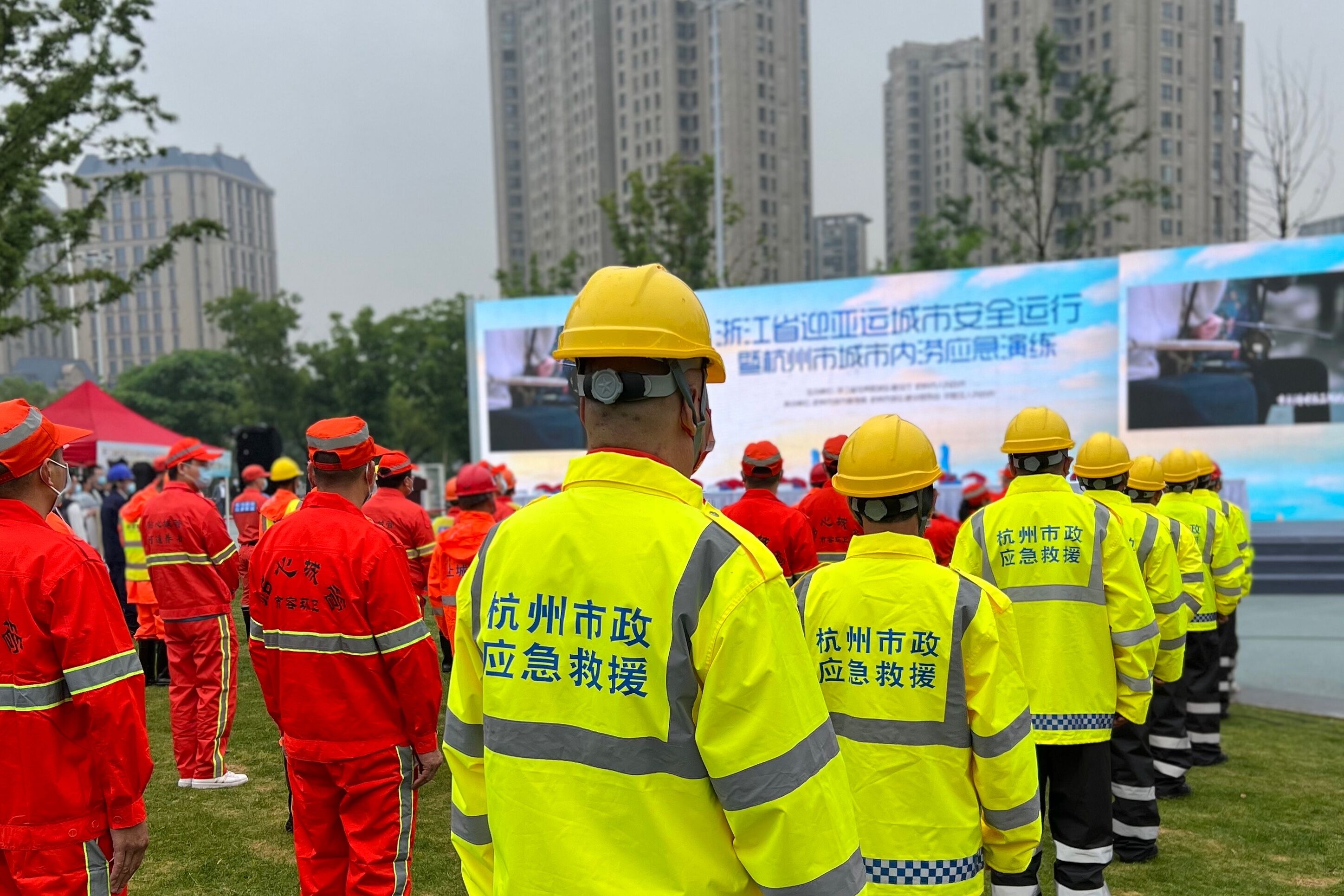 5月10日下午,浙江省迎亚运城市安全运行暨杭州市内涝应急演练在拱墅区大运河亚运公园举行。演练由浙江省建设厅、杭州市政府主办,杭州市城管局、市建委、拱墅区政府承办。省、市有关部门负责人、专家,市、区城管住建系统单位有关负责人,市政防涝有关企业、行业代表到场观摩。