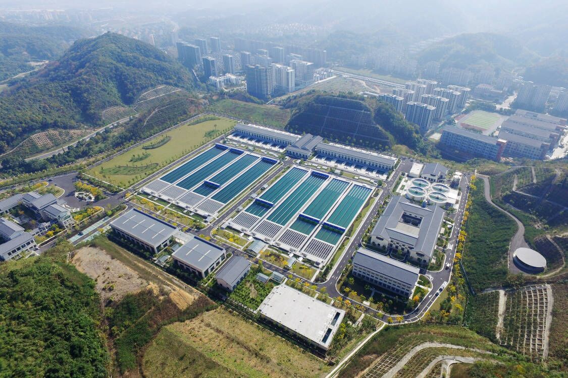 闲林水厂是杭州第一座山地水厂,是千岛湖配供水工程“两厂四线”的重要组成部分,分两期建设。二期工程为30万立方米/日深度处理工程,总建筑面积17295平方米,主要是新建反应沉淀清水池、砂滤池、管沟等3个单位土建工程,各类阀门、水泵、鼓风机、控制柜等设备安装,工艺管道安装,厂区内雨污水管、道路施工,造价1.05亿元。